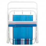 A szék lapra csukható, így szinte semennyi helyet sem foglal az autó csomagtartójában, a lakókocsiban vagy akár a strandtáskában. A kinyitás másodpercek kérdése – csak nyissa szét, és már pihenhet is.