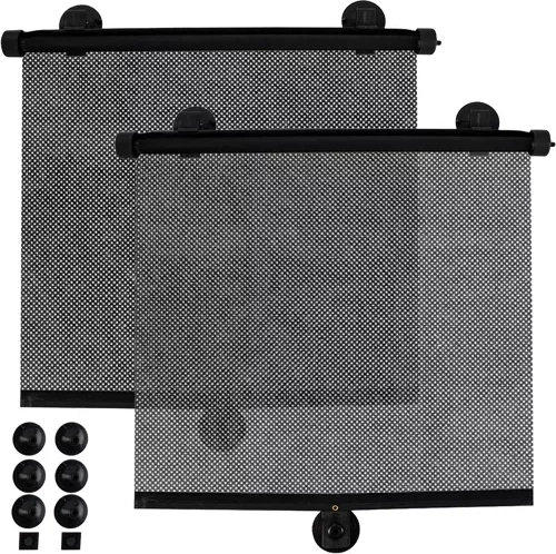 Két darabból álló, automatikus feltekerésű autós rolószett, amely védi az utasokat és a belső teret a túlmelegedéstől és a vakító fénytől. A finom szövésű háló hatékony árnyékolást biztosít, miközben megőrzi a kilátást az autóból. Könnyű ablakra szerelés tapadókorongokkal és akasztókkal szerszám nélkül, valamint univerzális kompatibilitás a legtöbb autóhoz.
