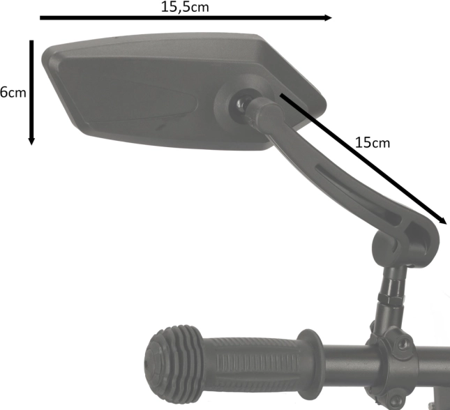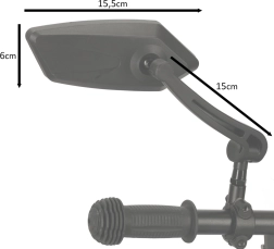 A tükrök 15 cm-es karral rendelkeznek, amely széles rálátást biztosít, méretük 15,5 cm x 6 cm. A kiváló minőségű műanyag kivitel hosszú élettartamot garantál.