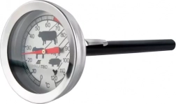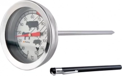 A hőmérő tartalmaz szimbólumokat különböző húsfajták optimális hőmérsékletére és jól olvasható számlapot.