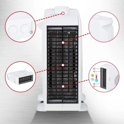 Megbízható, kétfunkciós hőlégfúvó. Két teljesítményszinten működik, és beépített termosztáttal rendelkezik, amely lehetővé teszi a termelt hő mennyiségének szabályozását az igényei szerint. Hűtő üzemmódban is használható, amely hideg levegőt fúj. Ennek köszönhetően a ventilátoros fűtőtest hideg és forró napokon egyaránt hasznos. A nagyobb biztonság érdekében a készülék túlmelegedés elleni védelemmel van felszerelve. További előny, hogy a fűtő ventilátor vízszintesen vagy függőlegesen is elhelyezhető.