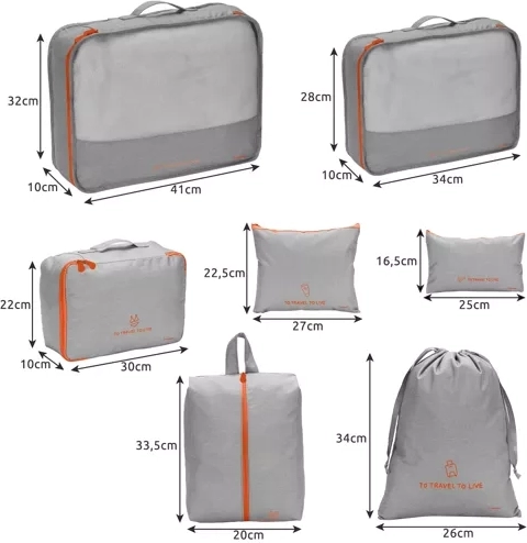 A hét részes készlet lehetővé teszi a dolgok hatékony elrendezését a bőröndben vagy a szállodai szobában. Ossza szét dolgait szükség szerint, és biztosítson könnyű hozzáférést minden tárgyhoz.