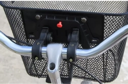 A kosár CLICK típusú rögzítéssel van ellátva, ami gyors fel- és leszerelést biztosít további eszközök használata nélkül. Tartalmaz gumialátéteket, amelyek védik a kormányt.