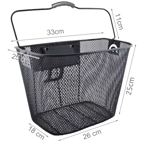 A kosár tartós anyagból készült, és képes akár 6 kg súlyt és 15 liter űrtartalmat elviselni. Alkalmas különböző típusú biciklikhez, mint városi, túra- vagy hegyi biciklik, rugózóval vagy anélkül.