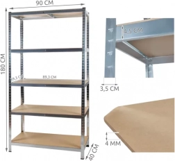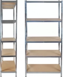 A stabil polcrendszer horganyzott acélból és vastag MDF polcokból készül, így bírja a nagy terhelést és a mindennapi használatot. Minden polcot középső merevítés erősít, a lábak gumis végei óvják a padlót és megakadályozzák a csúszást. A 3 cm-enkénti furatoknak köszönhetően könnyen beállítható a polcok magassága a tárolt tárgyakhoz igazítva.