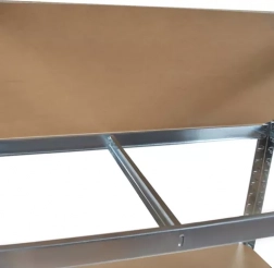 0,65 mm horganyzott acél és 4 mm MDF. A lábakon lévő csúszásgátló végek védik a padlót és növelik a biztonságot.