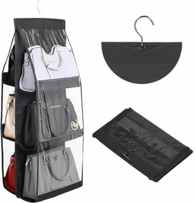 Táskák szervezőszekrénybe tökéletes megoldás minden háztartás számára. Lehetővé teszi akár 6 táska egyidejű felakasztását, megkönnyítve ezzel a tárolást és hatékonyan kihasználva a helyet a szekrényben. Tartós műanyagból készült, amely hosszú élettartamot és megbízhatóságot garantál. Teljesen összecsukható kialakítása azt jelenti, hogy használaton kívül minimális helyet foglal el.