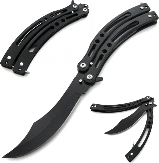 Jellemzői: - Összecsukható pillangókés éles végződésű pengével.