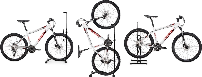 A 3 az 1-ben kerékpártartó stabil és biztonságos tárolást biztosít kerékpárjainak a garázs, a pince vagy akár a kert környezetében. Az univerzális kialakítás és az antikorrozív felületkezelés nélkülözhetetlenné teszik a tartót minden kerékpáros felszerelés részeként.