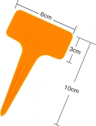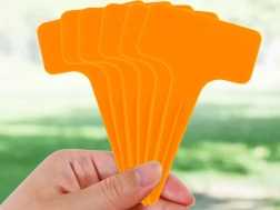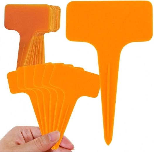 Ezek a T-profilú kerti jelölők kényelmes, jól olvasható felületet kínálnak a feliratozáshoz. A felület alkoholos filchez és hagyományos tollhoz is alkalmas, így tartós jelölést biztosít, amelyet az eső vagy az öntözés nem mos le. Feltűnő színeiknek köszönhetően a címkék első pillantásra észrevehetők, és segítenek gyorsan megkülönböztetni az egyes fajtákat.