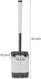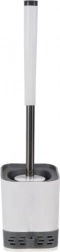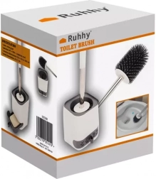 A modern RUHHY WC-kefe szilikon fejjel és fali tartóval biztosít higiénikus, gyors és hatékony tisztítást, lerakódások nélkül. A készlet része a kivehető csepegtetőtálca abszorbens betéttel, a fúrás nélküli rögzítés lehetősége, valamint a nyélben rejtett csipesz az egyszerű karbantartáshoz.