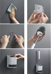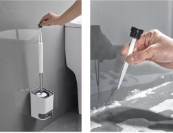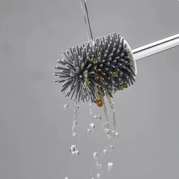 Az elegáns fürdőszobai szett szilikon kefét kombinál rozsdamentes acél, hosszú nyéllel és kompakt, szellőzőnyílásos tartóval a gyors száradásért. A rugalmas TPR sörte minden sarokba, a perem alá és mélyebbre is elér, miközben nem karcolja a felületet. A tartó a padlóra állítható, vagy fúrás nélkül felragasztható a falra.