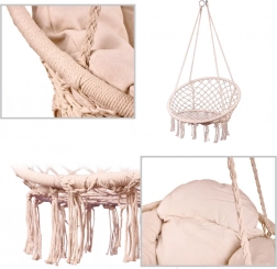 Élvezze a tökéletes pihenést a gólyafészek típusú függőszékben, puha párnával. Masszív felépítés, 150 kg teherbírás és 80 cm átmérő a kényelemért és stabilitásért. Az időtlen ekrü szín illik a kertbe, teraszra, erkélyre és a lakásba is.
