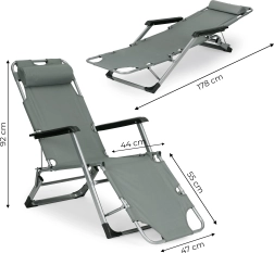 Élvezze a nyarat a ModernHome prémium minőségű összecsukható napozóágyával, amely különböző helyszínekre, mint a kert, terasz, strand vagy akár piknikre is ideális. Ez a 2 az 1-ben kerti bútor gyorsan átalakítható karosszékből napozóággyá.