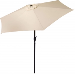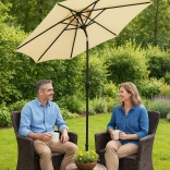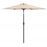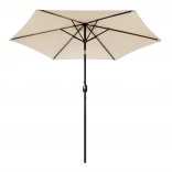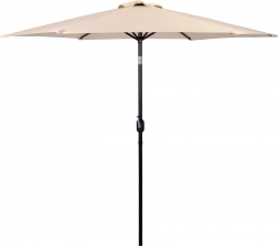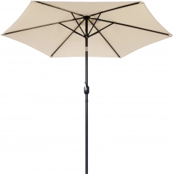 Nagy, 270 cm-es kerti napernyő döntési lehetőséggel és kényelmes kurblis nyitással, amely kellemes árnyékot biztosít teraszon, kertben és erkélyen. Az ellenálló 160 g/m² poliészter véd a napsütéstől és az enyhe esőtől, a szellőzőnyílás javítja a légáramlást, a stabil acél szerkezet 6 karral pedig megbízhatóságot garantál. Az elegáns bézs szín könnyen illeszkedik a kültéri bútorokhoz.