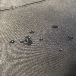 Textil szerkezet vízlepergető felülettel, erős varrásokkal és megbízható cipzárokkal, amely rosszabb időben is védi a tartalmat.