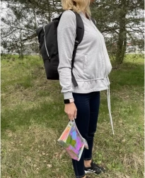 A csomag tartalmaz egy praktikus, holografikus hatású átlátszó cipzáras táskát – ideális kozmetikumokhoz és folyadékokhoz a repülőtéri ellenőrzés során.