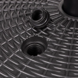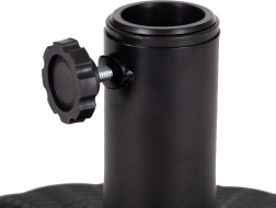 Az állvány jellemzői két gyűrű a napernyő biztonságos rögzítéséhez 4 és 5 cm átmérőjű rudakkal. Állítható csavar biztosítja, hogy a napernyő szilárdan maradjon a tartóban. A porfestett fém mechanizmus növeli időjárásállóságát.
