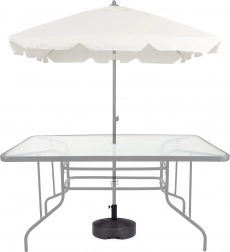 A napernyőtartó porfestett fém csavarral és két gyűrűvel van ellátva a biztonságos tartás érdekében.