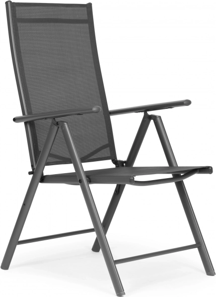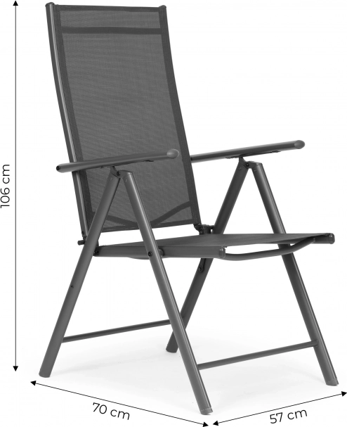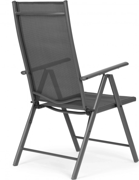 Élvezze a kültéri pihenést bármikor. Ezek az összecsukható székek 7 fokozatban állítható háttámlával lehetővé teszik az ideális pozíció beállítását – az asztalnál történő egyenes üléstől egészen a kényelmes olvasós pihenésig. A masszív, porszórt acél váz stabilitást és hosszú élettartamot biztosít, míg a textilén a testhez idomul és remekül szellőzik.