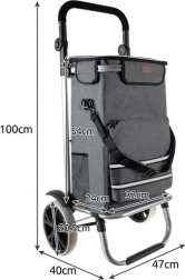 Megbízható, kerekes bevásárlótáskát keres, amely egyetlen körrel a nagyobb bevásárlást is elbírja? Ez a masszív MALATEC kocsi akár 40 l-t befogad és 30 kg-ot elbír. A nagy kerekek hab futófelülettel és zárt csapágyakkal egyenletes, csendes futást biztosítanak járdán és kövezeten, miközben a magasságában állítható fogantyú a különböző testmagasságú felhasználókhoz igazítja a kezelhetőséget.
