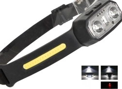 Ez a fejlámpa fejlett LED COB technológiát használ, amely egyenletes megvilágítást biztosít kézben tartás nélkül.