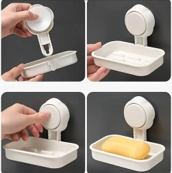 A szappantartó erős tapadókoronggal van a falra rögzítve. Elég a tapadókorongot a falhoz nyomni és erősen megnyomni a kerek gombot.