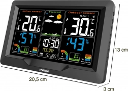 Meteo otthoni meteorológiai állomás egy magasan felszerelt eszköz az időjárás megfigyelésére. Kínál vezeték nélküli hőmérséklet- és páratartalom mérést. Időjárást jósol ikonok segítségével és kényelmes komfort jelzőt biztosít.