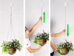 Többé nem kell létrára mászni. Az állítható horog kihúzható mechanizmussal lehetővé teszi, hogy leengedd a cserepet, kényelmesen megöntözd vagy megmetszd a növényeket, majd finoman visszaemeld a kívánt magasságba. Ideális függő cserepekhez, fűszernövényekhez és dekorációkhoz.