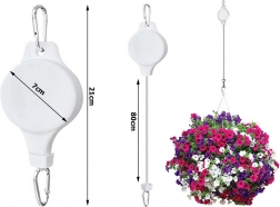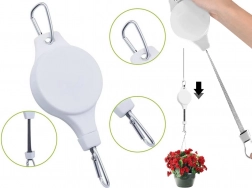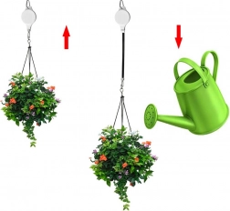 A kihúzható mechanizmus nejlon hevederrel lehetővé teszi a cserép biztonságos leengedését és újbóli felemelését – ideális a rendszeres öntözéshez.