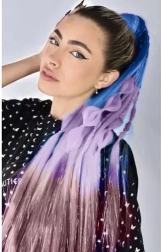 A kék, lila és rózsaszín kombinációja finom csillogó tincsekkel azonnal feldob minden frizurát, és egyedi karaktert kölcsönöz neki.