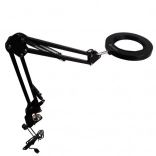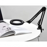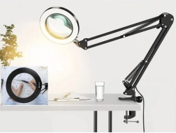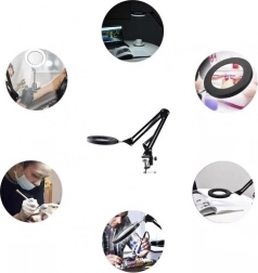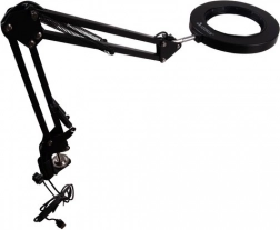 Az IZOXIS nagyítós lámpa modern dizájnt, rugalmas karokat és minőségi optikát ötvöz a részletgazdag, precíz munkához. A kör alakú LED gyűrű egyenletesen világítja meg a lencse környezetét, növeli a kontrasztot és az apró részletek olvashatóságát, miközben kíméli a szemet. A fém satu-szorító csavarral akár 5 cm vastag asztallapra is stabilan rögzíti a lámpát.