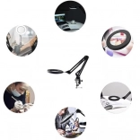 A praktikus IZOXIS asztali nagyítós lámpa erős, kör alakú LED világítást, stabil asztali rögzítést és üveg optikai lencsét kínál a torzításmentes, precíz munkához. A 10 fényerőszintnek és a 3 színhőmérsékletnek (meleg, semleges, hideg) köszönhetően könnyedén beállíthatja a fényt kozmetikához, makettezéshez, olvasáshoz és finom kézmunkához. A USB-s tápellátás és a kábelen lévő vezérlő maximális kényelmet biztosít.