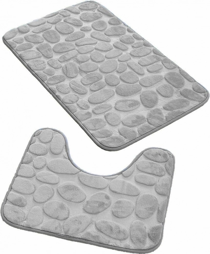 Tökéletes fürdőszobai szett szép textúrával. A készlet két alátétből áll – egy klasszikus fürdőszobai szőnyegből és egy WC-szőnyegből. Elege van abból, hogy a nedves fürdőszobai padlón a lábnyomokat törölgeti? Fektessen be egy szőnyegbe, amely hatékonyan elnyeli a nedvességet, szárazon tartja a fürdőszoba padlóját, és megkíméli a további takarítástól. Az alkalmazott anyagnak köszönhetően a szőnyegek puhák, rugalmasak és kellemes tapintásúak. Olyan tulajdonsággal is rendelkeznek, hogy megjegyzik a lábunk formáját! A fürdőszobai járólapon sem fog fázni a lába. A speciális alsó felületkezelés biztosítja, hogy ne csússzanak.