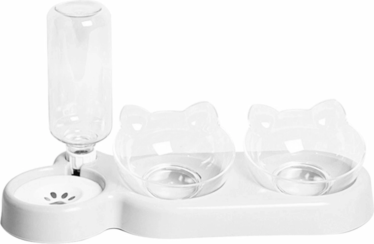 Automatikus vízadagoló és etetőtál macskáknak. A 15 fokos tál dőlésszög megkönnyíti kedvencünk táplálkozását. A 0,5 l-es vízpalack biztosítja, hogy kedvence számára folyamatosan elérhető legyen a friss víz. A speciális szelepnek köszönhetően a készülék automatikusan utántölti a vizet a tartályból a tálba. A kompakt kialakítás jól mutat kis konyhákban és előterekben.