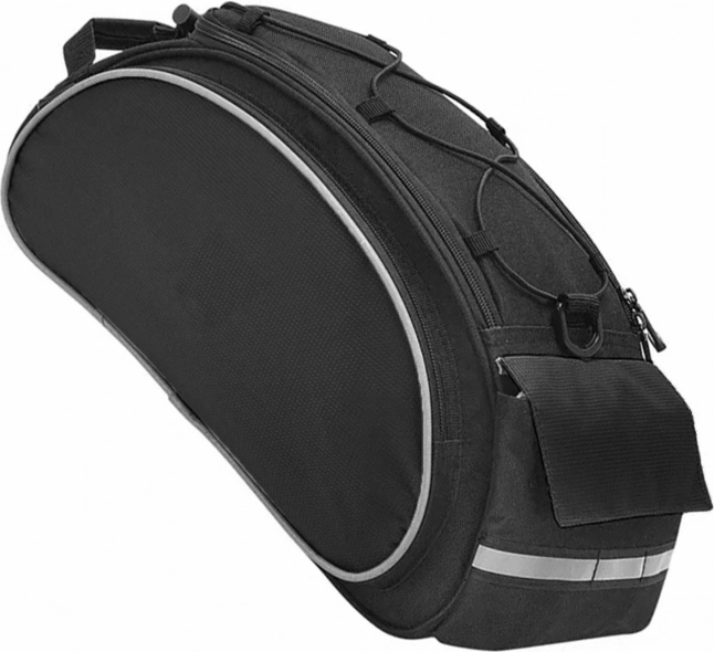 Tágas, négyrekeszes kerékpártáska csomagtartóra, tartós és könnyen tisztítható vízálló poliészterből. Kiválóan hasznos hosszabb és többnapos kerékpártúrákhoz. Tágas, 15 literes fő rekesszel és 3 további cipzáras zsebbel rendelkezik (két oldalsó és egy hátsó tépőzáras). A kiegészítő palacktartó megkönnyíti az italok szállítását. A táska fényvisszaverő elemekkel is rendelkezik, amelyek növelik a biztonságot és sötétedés után láthatóbbá tesznek. A táska tépőzáras pántokkal rögzíthető a kerékpár csomagtartójára (hátul). Vállpántjának és fogantyújának köszönhetően kézitáskaként is használható – így Ön döntheti el, mire használja.