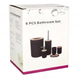 Stílusos, 6 részes fürdőszobai szett elegáns szürke színben, természetes fa akcentusokkal, amely egységesíti a fürdőszoba megjelenését, és mindent biztosít a mindennapi higiéniához. Tartalma: szappanadagoló, pohár, fogkefetartó, szappantartó, WC-kefe tartóval és szemetes. A tartós műanyag kivitel és a könnyű karbantartás hosszú élettartamot és modern, minimalista megjelenést biztosít.