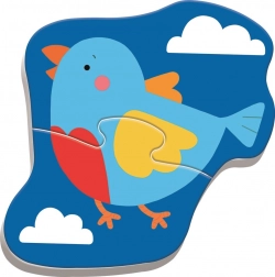 A 4 állat mindegyike csupán 2 nagy darabból áll. A gyerekek könnyen megértik az elvet, és gyorsan átélhetik a kész kép örömét.
