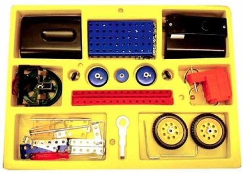 - Fém elemek, csavarok, anyák, műanyag kerekek/lánctalpak