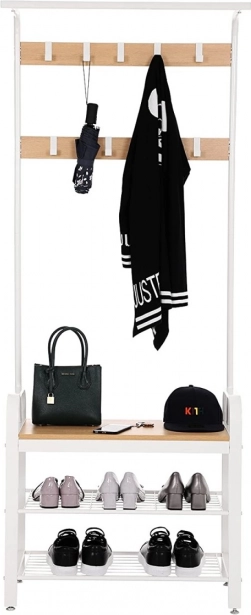 Összesen 9 akasztó két sorban lehetővé teszi különböző ruhadarabok és kiegészítők felakasztását. Ezenkívül rendelkezésre áll egy rúd a sálak felakasztására. Az akasztó alatt két tágas cipőpolc található, amelyek rendezetten tartják a cipőket. Az ülőke pedig kényelmet nyújt a cipők felhúzásához.