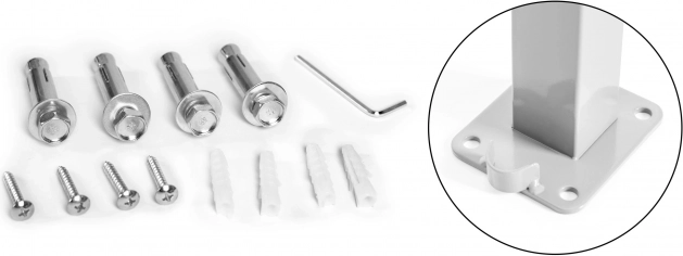 - Fali és padló rögzítés, a csomag tartalmazza a rögzítő kiegészítőket