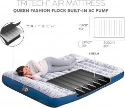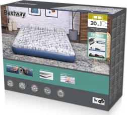 Kényelmes és praktikus megoldást keres vendégeknek vagy ideiglenes fekhelyként? A BESTWAY Queen 203 × 152 × 30 cm felfújható ágy Tritech anyagból készült, amely tartja a formáját és magasságát, stabil, és a flokkolt felületnek köszönhetően kellemes tapintású. A 220–240 V-os elektromos pumpa 2–3 perc alatt felfújja, így pillanatok alatt kész az ágy.