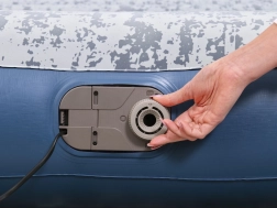 A 220–240 V-os beépített pumpa 2–3 perc alatt felfújja a matracot. A kezelése intuitív és gyors, így erőfeszítés nélkül kész az ágy.