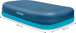 Az INTEX 58412 medence védőponyva megbízható megoldás a téglalap alakú medencék mindennapi letakarására. Megóvja a vizet a levelektől, rovaroktól és portól, így a fürdés minimális karbantartással élvezhető. Az erős vinil kivitelnek köszönhetően a ponyva tartós, és alkalmas a 305 × 183 cm-es és a 262 × 175 cm-es medencék rendszeres használat melletti letakarására.