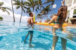 Az INTEX lebegő röplabdaháló sportos szórakozást és mozgást visz a medencédbe. A 0,25 mm vastag, masszív vinil és az oldalsó merevítések gondoskodnak a stabilitásról, míg a súlyozható horgonyok a helyén tartják a szerkezetet még élénkebb játék közben is. A csomag része a felfújható labda is, így azonnal kezdhetitek.