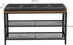 Stílusos és praktikus cipős szekrény, amely ülőhellyel is rendelkezik, ideális választás előszobába, folyosóra, irodába, recepcióra, vagy üzletbe. Az ipari stílusú kivitelezés és a strapabíró anyagok biztosítják a hosszú élettartamot.