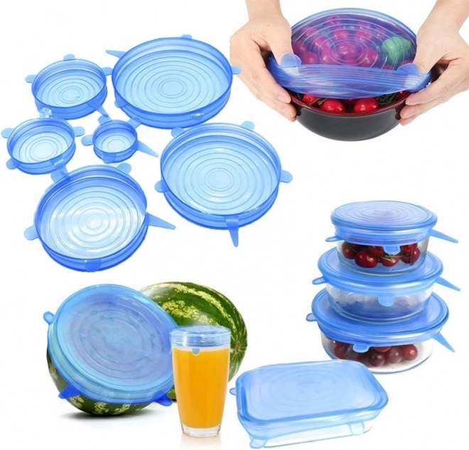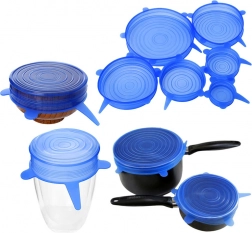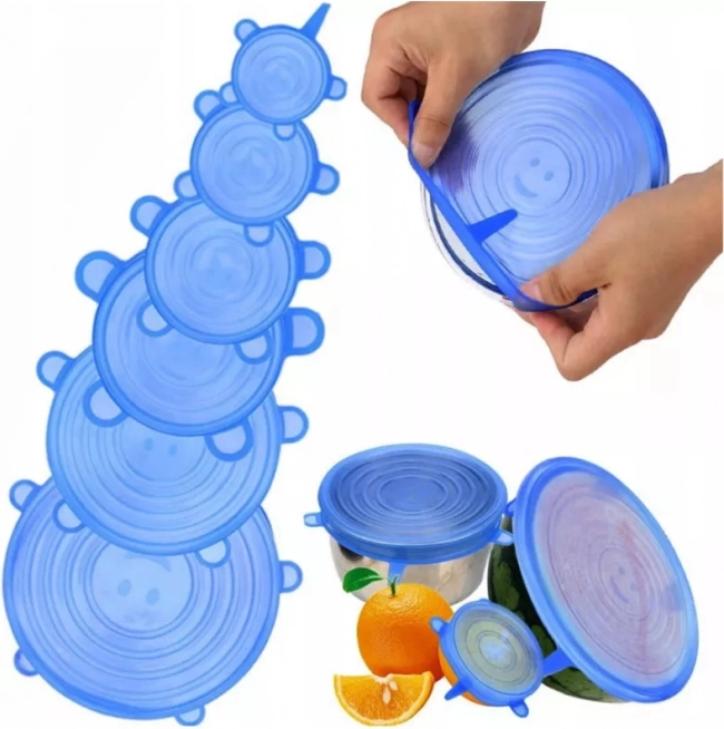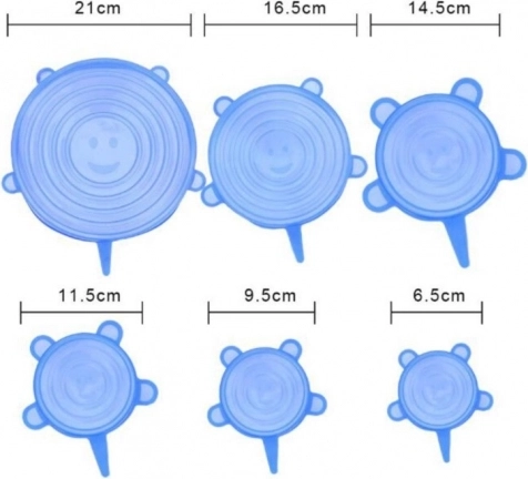 A hat különböző átmérőjű fedő lefedi a poharakat, tálakat, lábasokat és a félbevágott gyümölcsöket is – a kis poharaktól egészen a nagy tálakig.