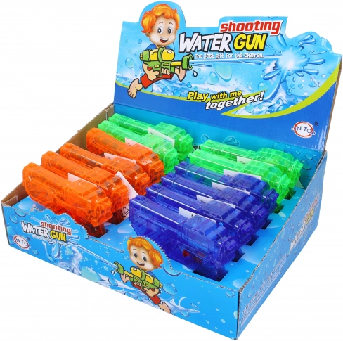 Stílusos vízpisztoly 15 cm hosszúsággal ideális a forró nyári napok felfrissüléséhez. Három színváltozatban kapható - kék, zöld és narancssárga.