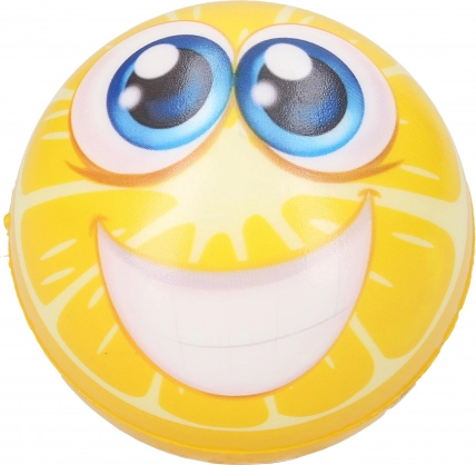 Ez a kis labda, mely átmérője 7,5 cm, szórakozást nyújt minden korosztályú gyermek számára. Világos színei és gyümölcs mintája miatt vonzza a figyelmet, remek módja a szabadidő eltöltésének.