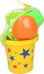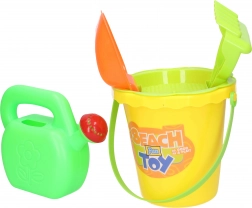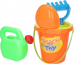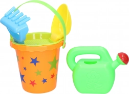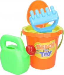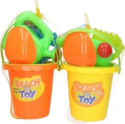 Praktikus gyerek homokozó készlet 15 cm méretben, amely mindent tartalmaz, amire a kis építőknek szükségük van: vödör, szita, locsolókanna, gereblye és lapát. 2 színváltozatban elérhető – sárga és narancssárga. Remek választás játszótérre, strandra és kertbe is.